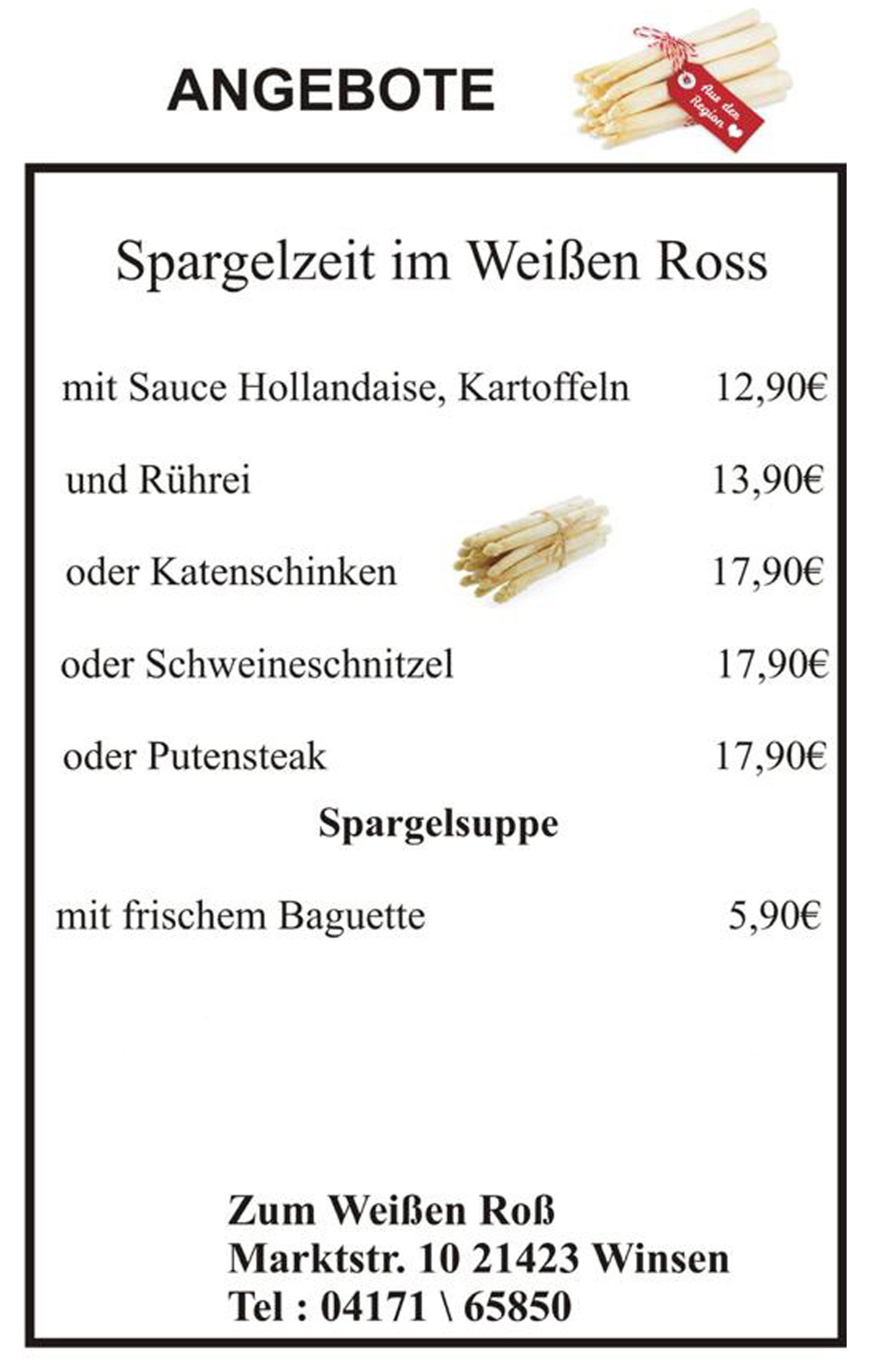 Genießen Sie doch einmal unsere Spargel Gerichte Zuhause.